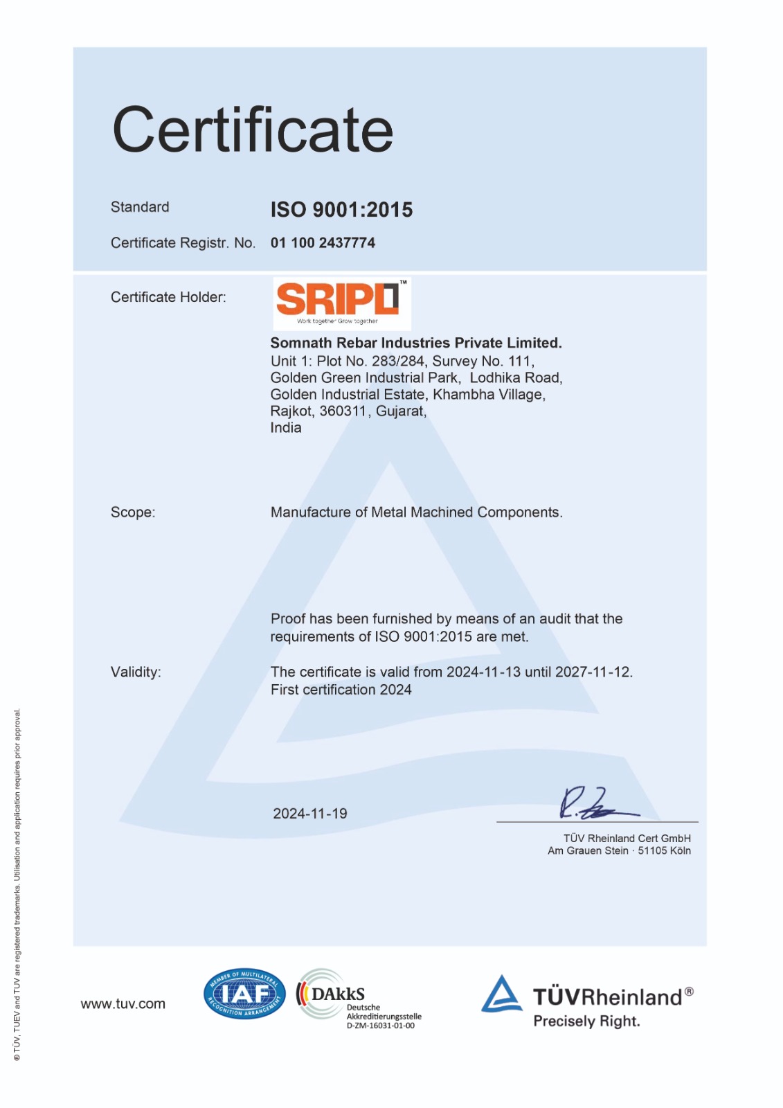 Somnath Rebar Industries Pvt.Ltd Formerly Known as Somnath Industries, established in 2015 , with the vision of one of the best machining solution providers to world with razor sharp tolerances. And now a days we are getting immense popularity among local as well as international markets.